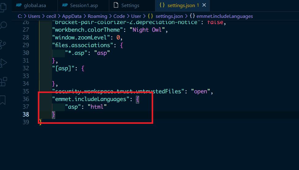 기본적으로 VS Code 에서 Classsic ASP 모드에서 Emmet 사용이 되지 않는다
